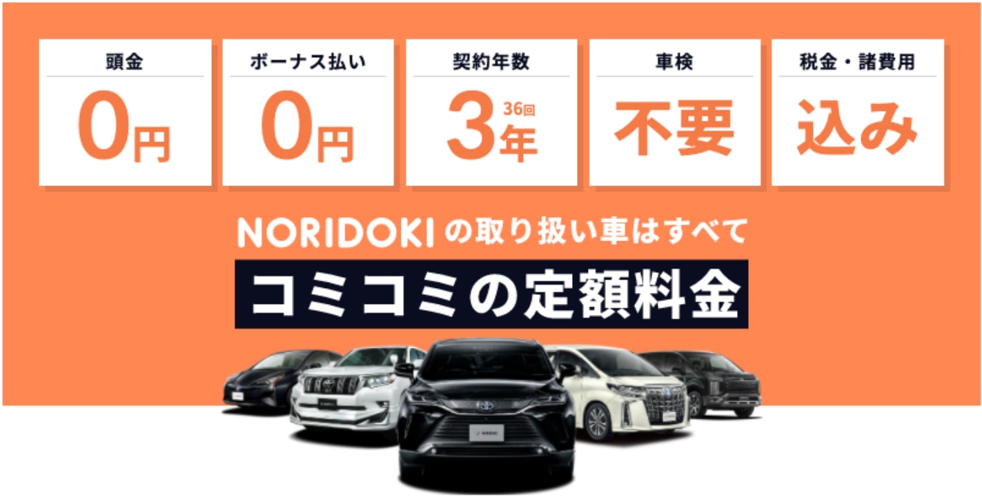 NORIDOKIなら頭金・ボーナス払い・諸経費・税金など一切不要!